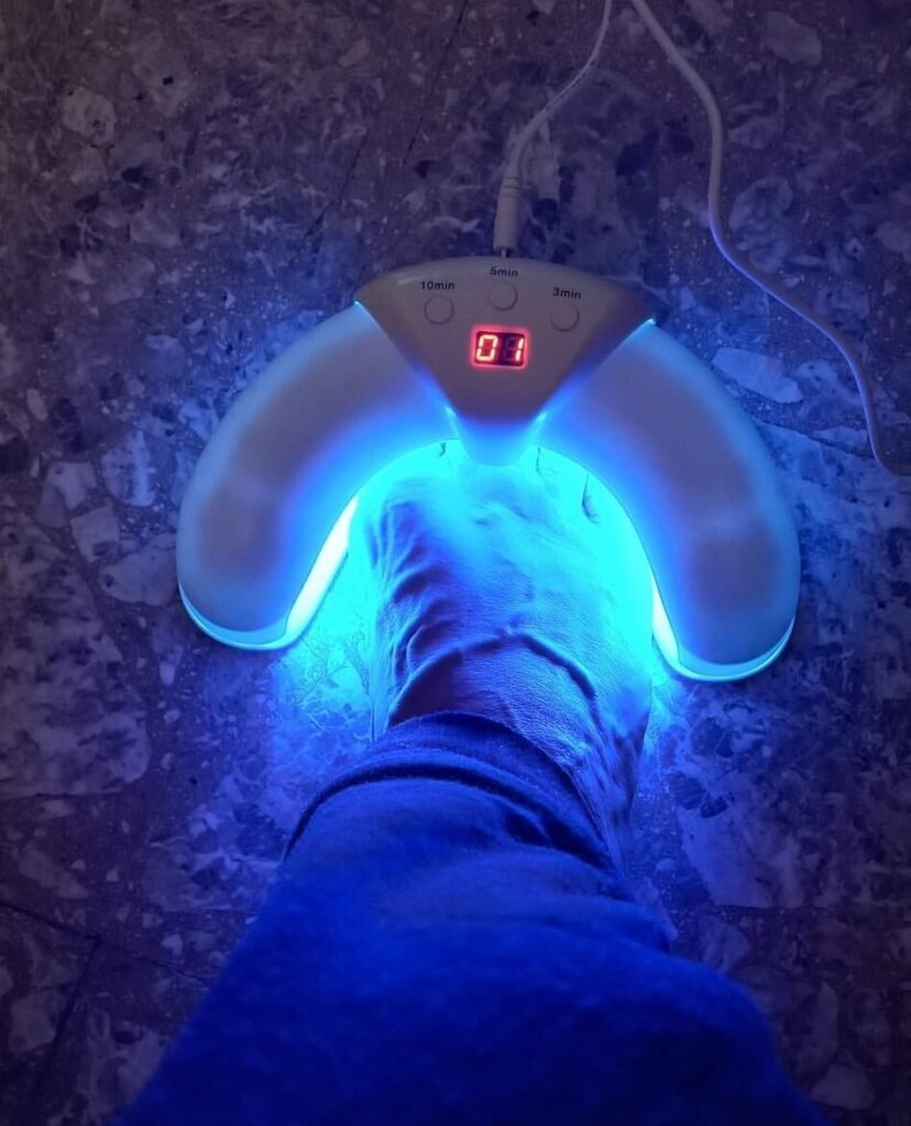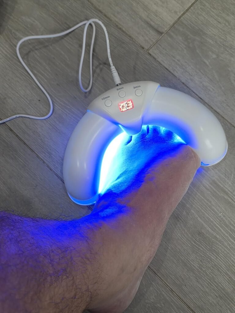 Mit seinem kompakten, faltbaren Design können Sie MykoMed™ überall hin mitnehmen. Es ist leicht und tragbar, sodass es die perfekte Lösung für die Nagelpflege unterwegs ist.